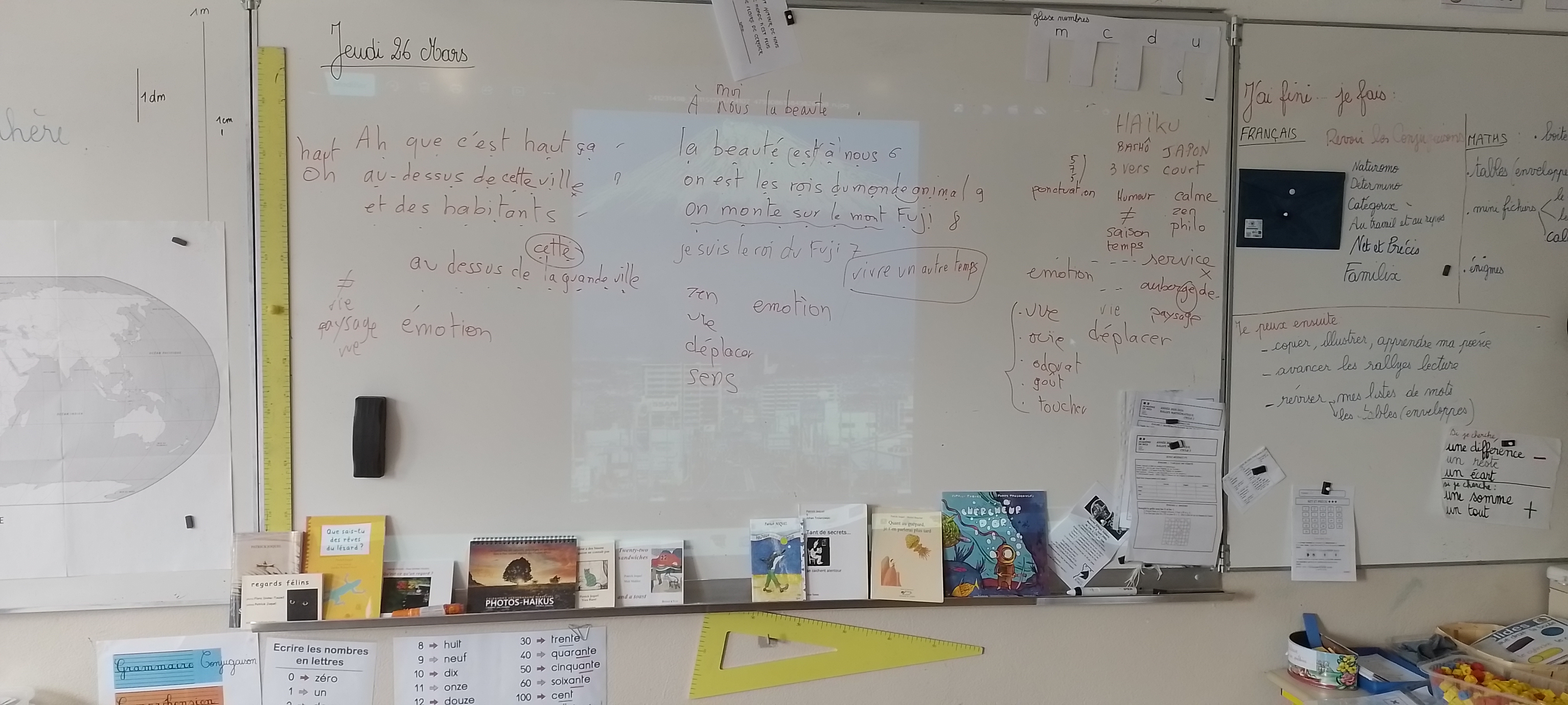 26 mars 2026, Printemps des Poètes, l’école du Rouret m’invite à rencontrer deux cp et un ce2 ; projet sur trois matinées autour des échos et du haïku.
